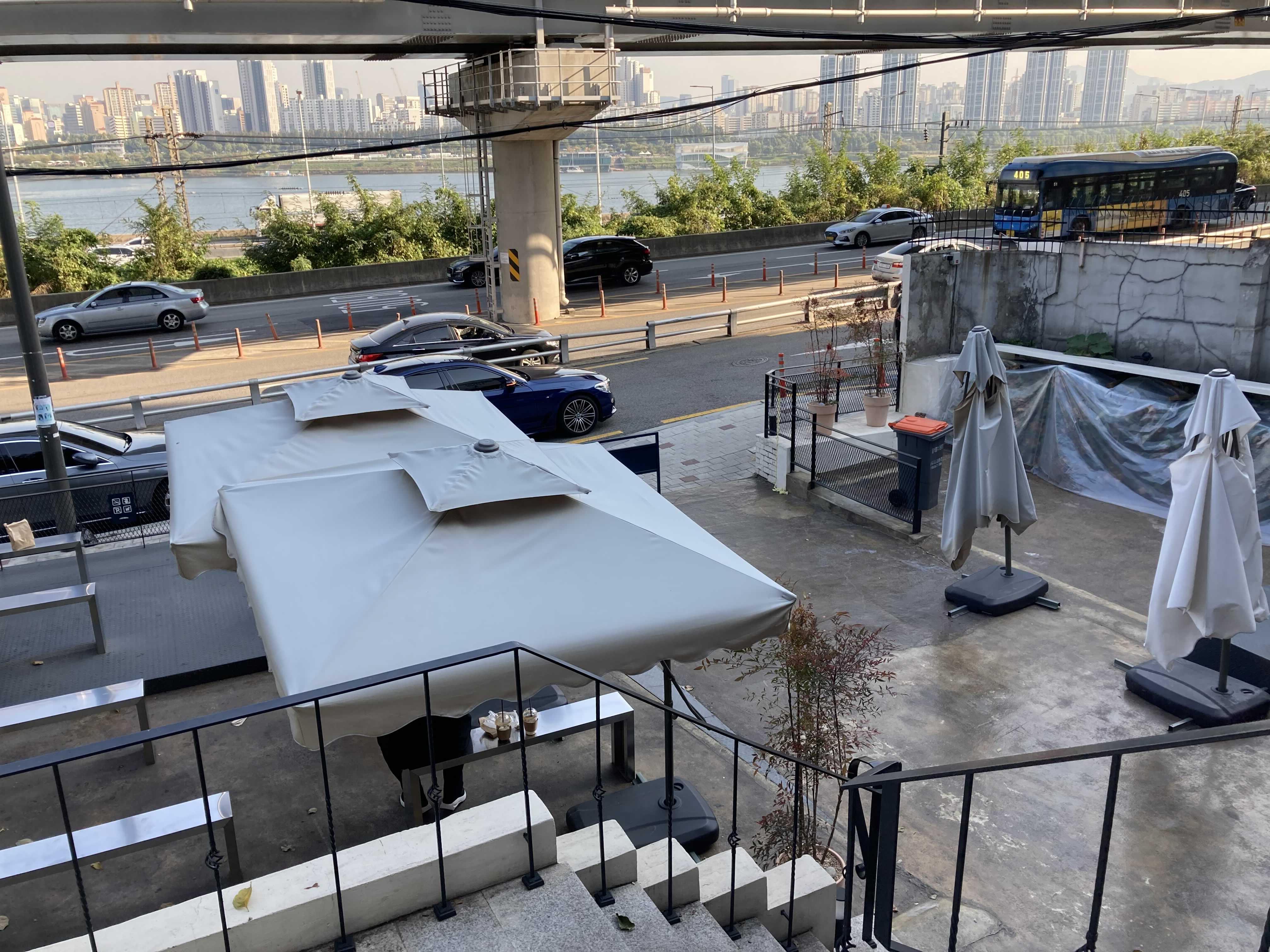 그렇지만 서빙고 고가, 강변북로, 한강이 보이는 코끼리베이글에 위치는 독특하였고 개방감이 멋졌습니다. 2층 내부에서 밖을 바라보는 모습이 꽤나 멋질것 같았어요. 위치하나 만큼은 아주 좋았습니다! 약간은 유동인구가 적은 곳인데도 많은 사람들이 찾아오는것도 신기했구요!
